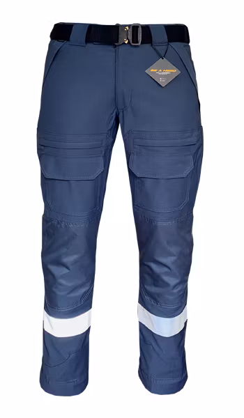 Nya Helix500 - insatsbyxa med samma god passform och rörelsefrihet som tidigare med stretch i hela byxan samt resår i linningen. Materialet är nu lite kraftigare och med högre andel bomull mot kroppen. Tyget har fått högre slitstyrka tack vare användningen av polyamid som man bl.a. gör Cordura av istället för polyester. Sidfickor med dragkedja och ficka-i-ficka på höger sida för mobil, nycklar etc. Lårfickor med drakedja och bälg samt påstickade mindre fickor med ficklock. Dubbla backfickor med dragkedja. Dragkedja i sidorna för diskret ventilation. Knäskyddsfickor i Cordura. Ställbart resårstängning (dolt resår) nedtill av byxan med tre tryckknapar och krok för att att fästa i kängorna.