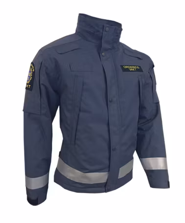 Emblem och fickor på ärmar samt ryggtryck